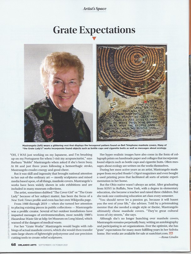 “Grate Expectations” by Rona Gindin, Orlando Arts Magazine: Artist Space, Sept/Oct 2021